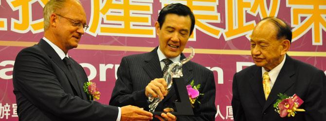 Le lendemain, le Président de Taïwan, M. Ma Ying-Jeou, a tenu à être présent aux côtés du Pr. Jacques Marescaux lors de l’inauguration du 1er Forum International consacré à la politique de développement des biotechnologies organisé conjointement par l’IRCAD France et la Fondation Taïwanaise pour la Santé.